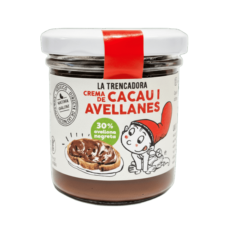 Un producte que aposta per l’avellana d’alta qualitat i de km0 com a ingredient principal (30%) per elaborar una crema única més saludable i amb un sabor distintiu. La crema de xocolata més avellaníssima.